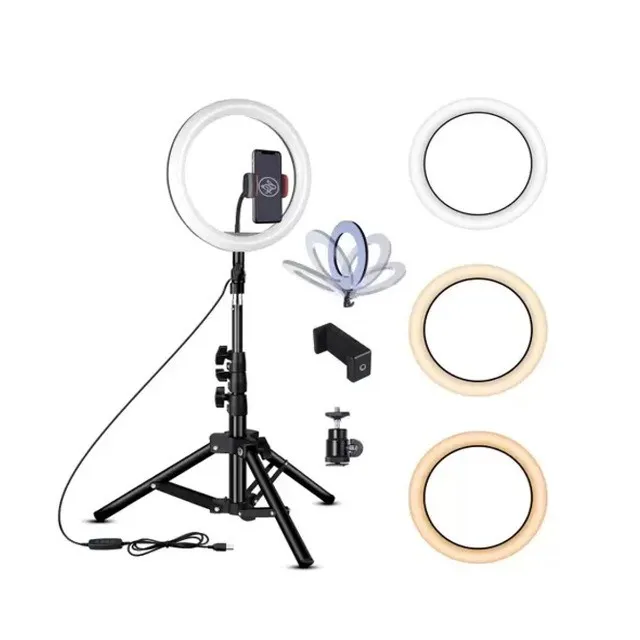 Faça suas lives e todo trabalho que desejar com o Iluminador Ring Light de 26 centímetros, desenvolvido para maquiadores, fotógrafos, cinegrafistas profissionais e amadores, etc, que buscam uma ótima maneira de iluminar com perfeição.