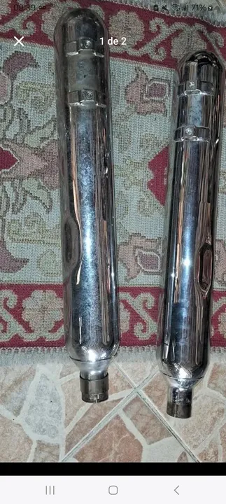 Par de escapamentos cromados para moto, em perfeito estado. Ideais para quem busca um visual clássico e elegante para sua moto. Aproveite essa oportunidade!