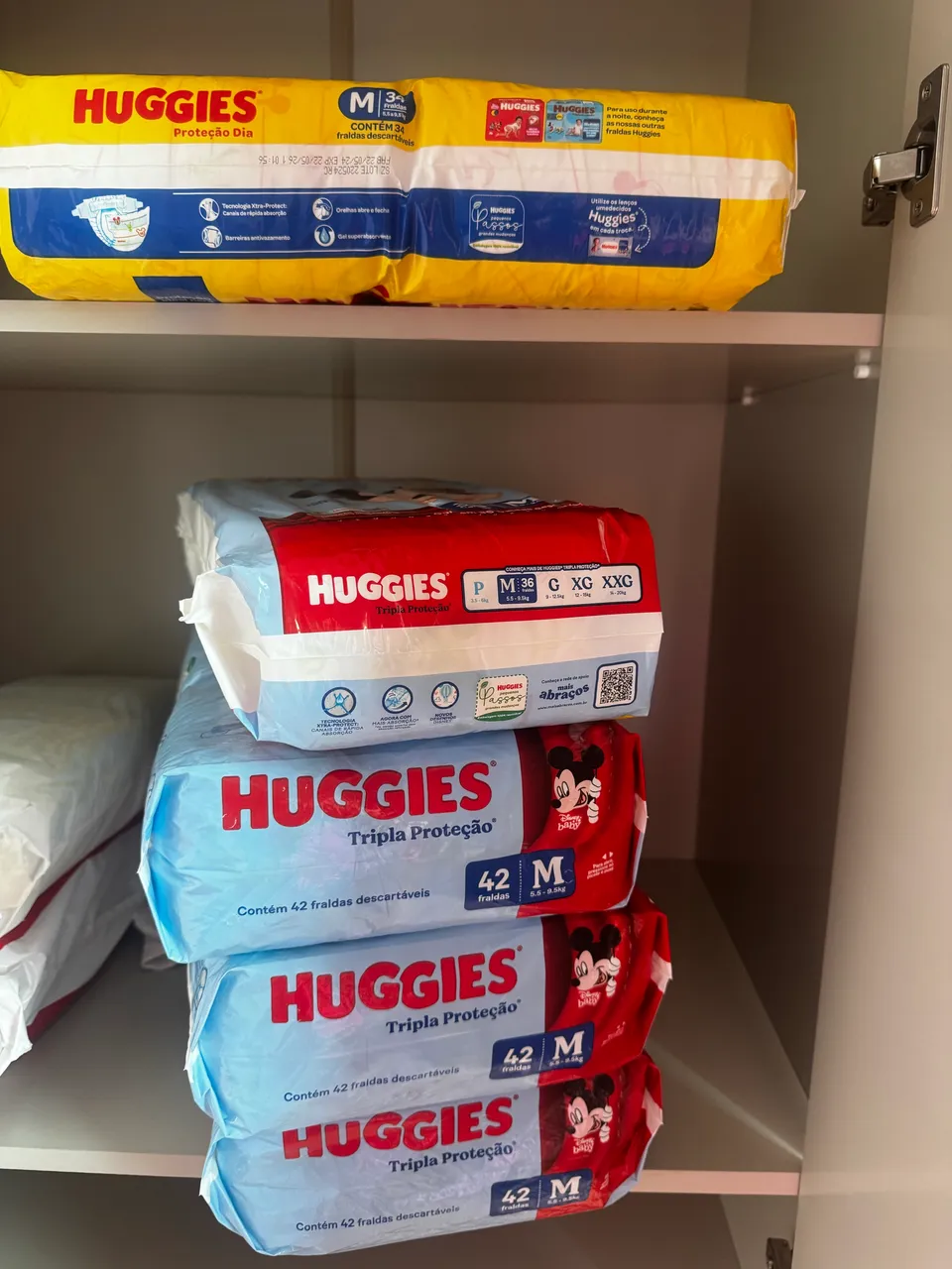 Fraldas Huggies Tripla Proteção tamanho M, ideais para o conforto e proteção do seu bebê. Com 42 unidades, proporcionam segurança e tranquilidade para o dia a dia. 5 pacotes de fraldas por 150,00