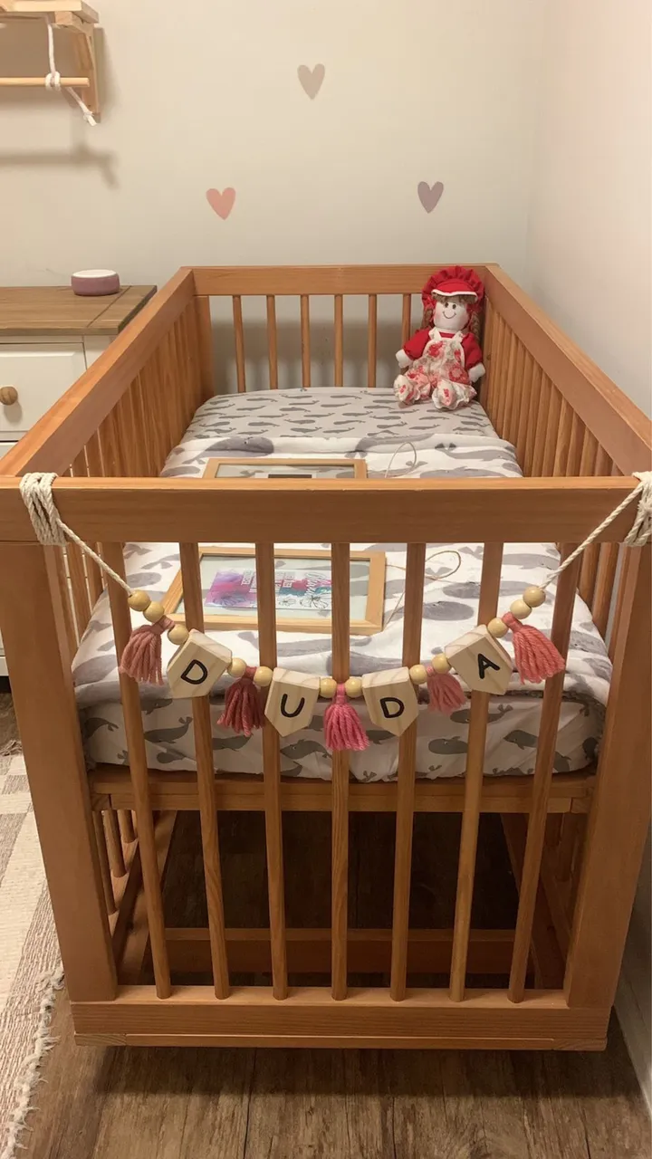 Lindo berço de madeira, perfeito para o quarto do seu bebê! Design clássico e seguro, proporcionando conforto e tranquilidade para o sono do seu pequeno.