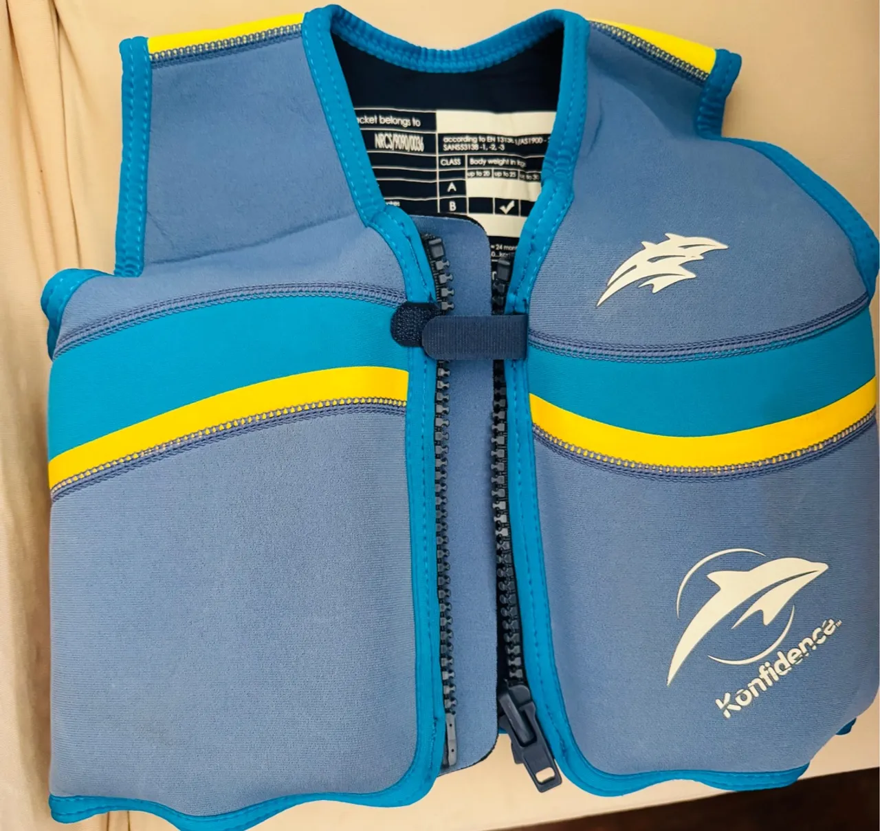 Colete salva-vidas infantil Konfidence, ideal para garantir a segurança dos pequenos na água. Com design moderno e confortável, oferece proteção e tranquilidade para os pais. Tamanho: ate 25 quilos