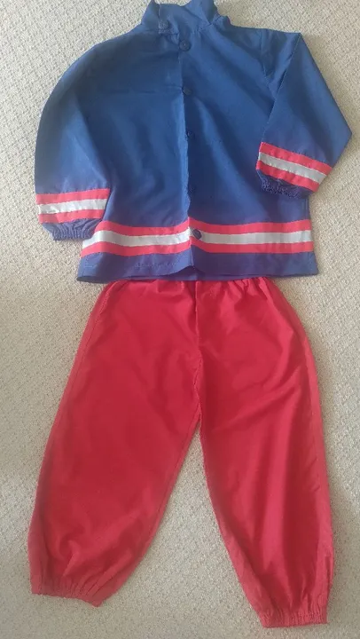Fantasia infantil carnaval bombeiro com calça e blusa mangas compridas veste aproximadamente 6anos