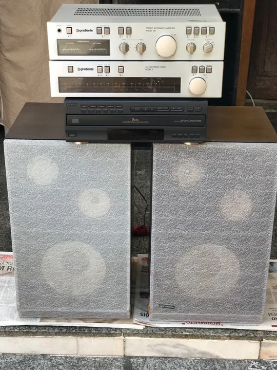 Aparelhos em excelente estado de conservação funcionando perfeitamente todas as suas funções, caixas de som em ótimo estado funcionando as 3 vias das duas caixas, componentes originais de fábrica nunca reformados, nota 9 para o estado de conservação de todo o conjunto, cd player Sony com controle remoto.