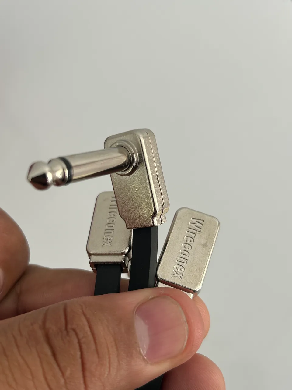 Kit com três cabos flat patch Wireconex para conectar seus pedais com qualidade e praticidade. Design compacto e eficiente para otimizar seu setup.