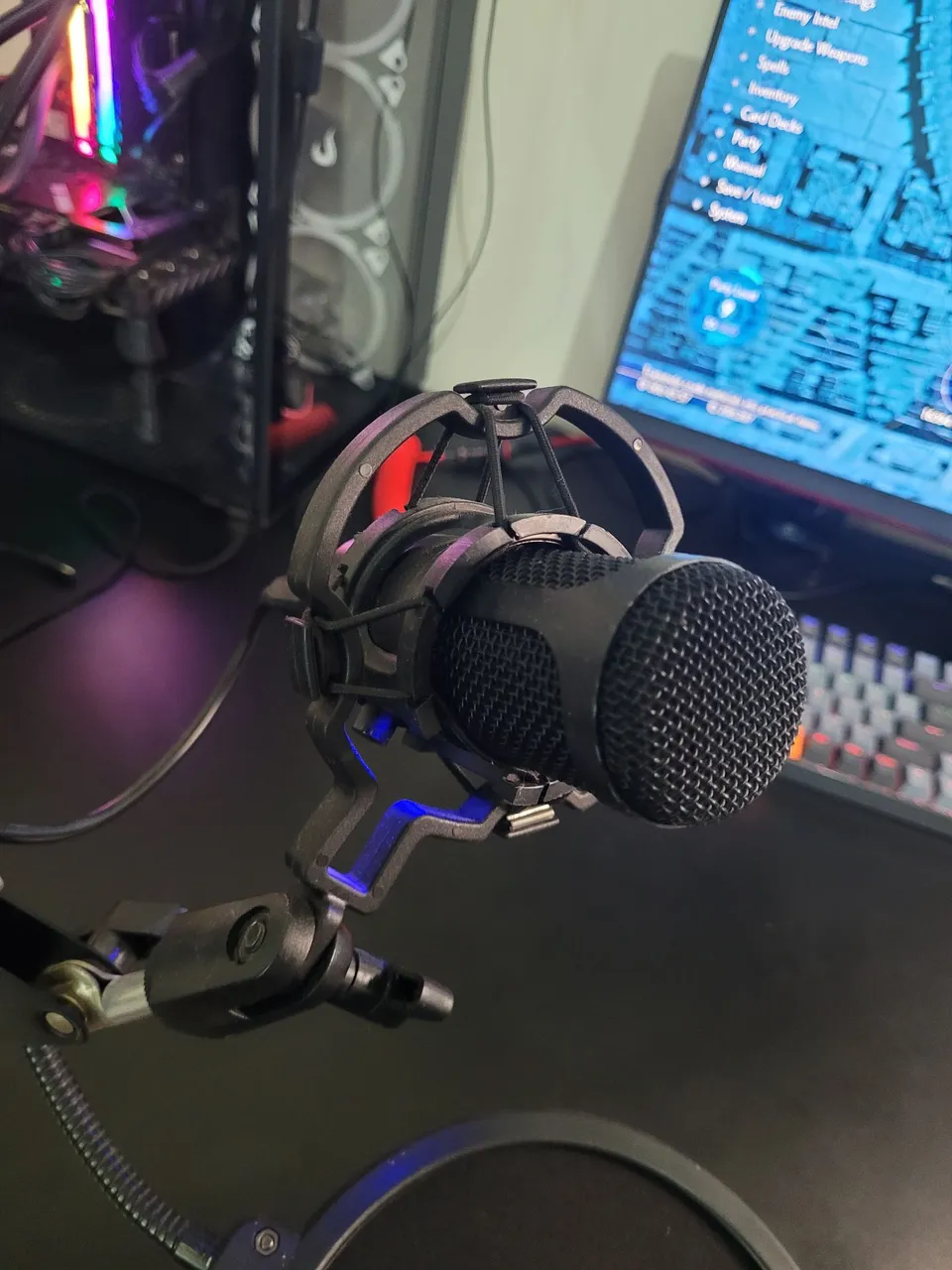 Microfone New Bee NB-DM18 Acompanha tripé Acompanha cancelador de ruído espacial e ruído de ventos Acompanha caixa e cabo usb A