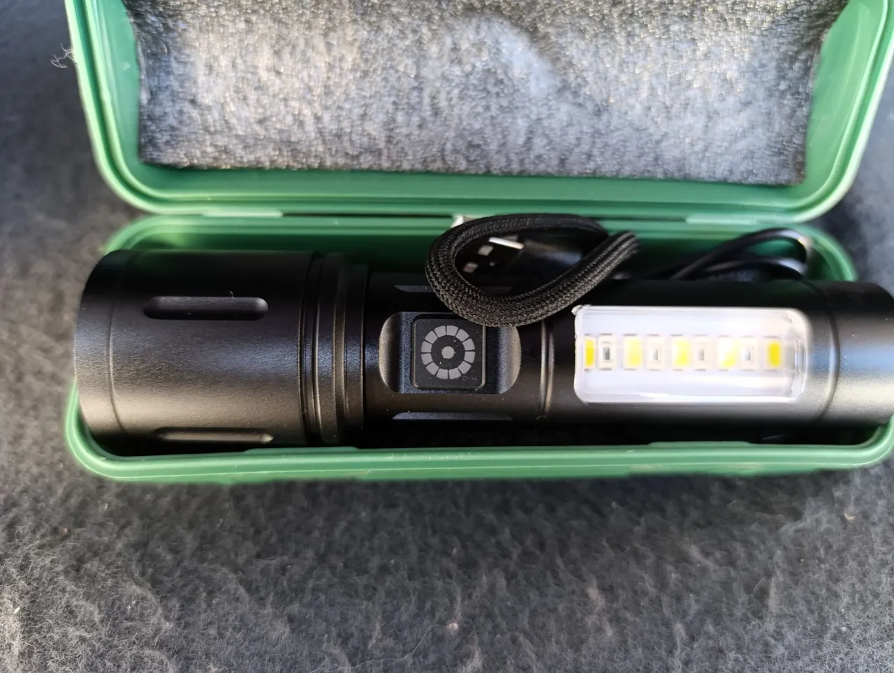 Lanterna recarregável USB de alta qualidade, ideal para diversas situações. Com design moderno e prático, oferece iluminação potente e duradoura. Adquira já a sua!