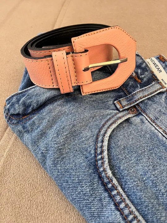 Cinto couro sintético cor Rosé tamanho total incluindo a fivela 95cm largura 3,5cm