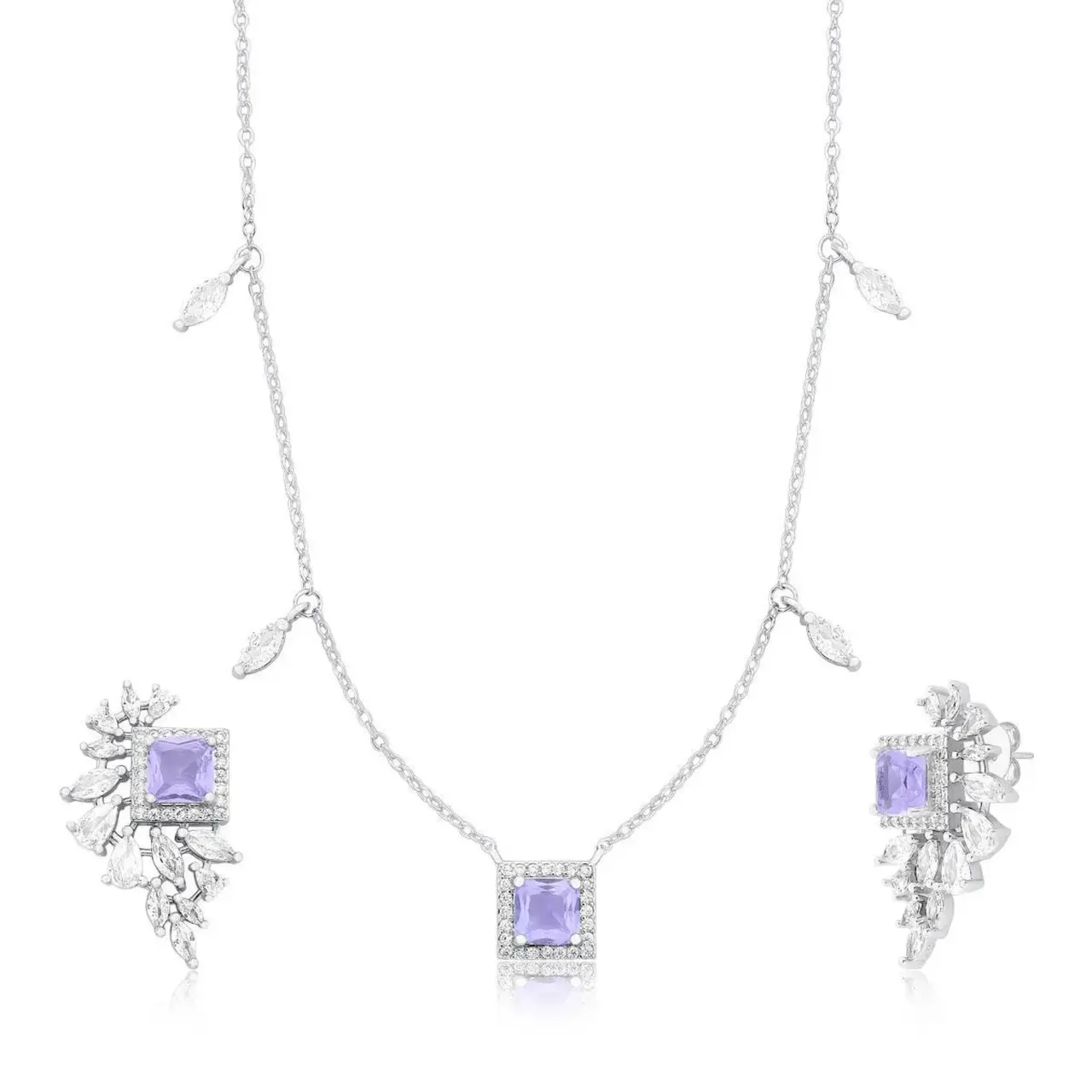 Conjunto em semi joia com banho em ródio.