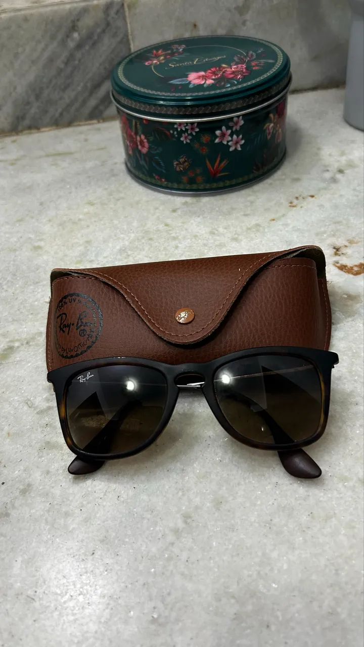 Ray-Ban Chris, com algumas marcas de uso, acompanha estojo. Peça original Retirada: Coração Eucarístico