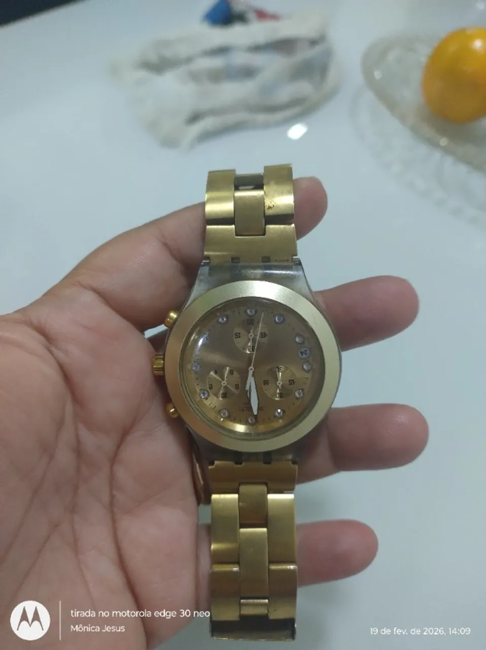 Este relógio diaphane combina elegância e estilo em um design sofisticado. Seu mostrador dourado e pulseira reluzente adicionam um toque de requinte ao seu visual.