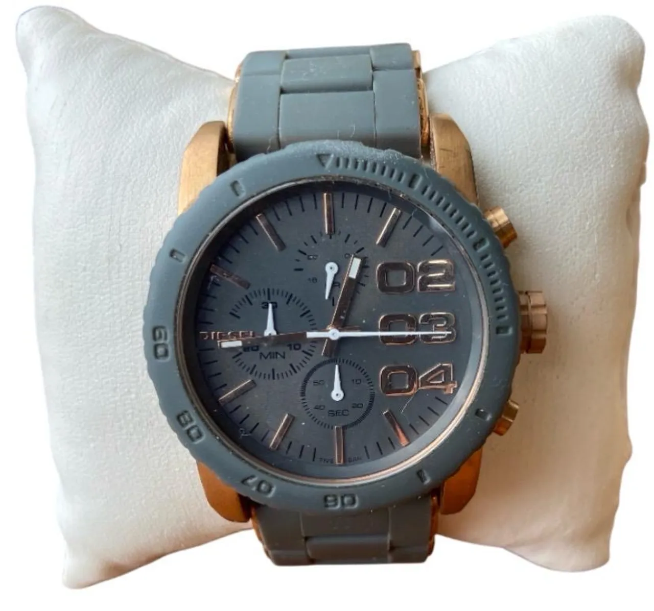 Relógio de pulso Diesel, original, emborrachado cinza e cobre , perfeito para complementar seu visual com elegância. Design arrojado e acabamento impecável, acompanha estojo e manual.