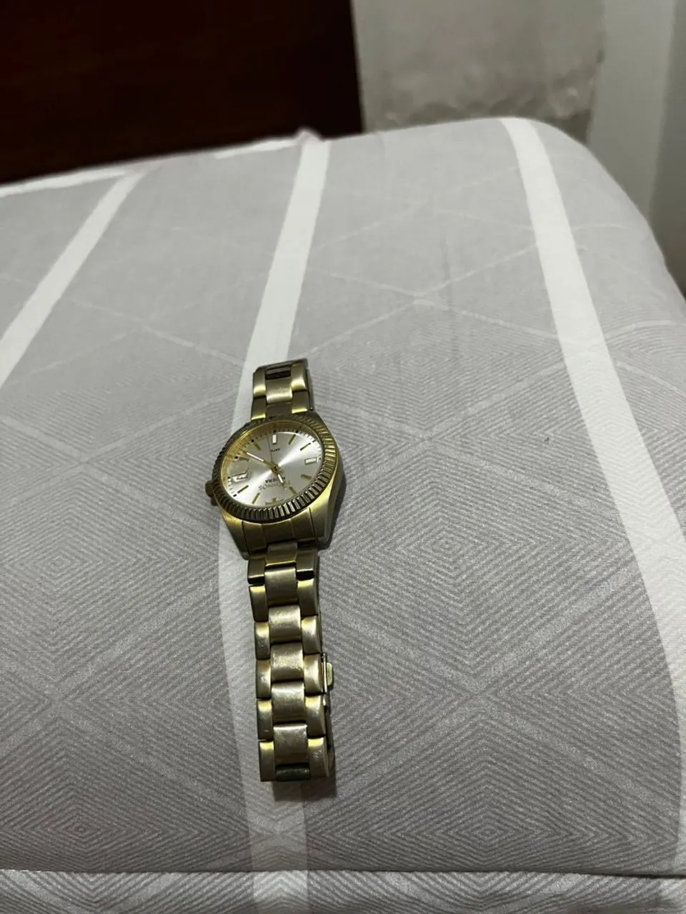 Relógio dourado com design clássico e elegante. Perfeito para quem busca sofisticação e um toque de glamour no visual. Ideal para diversas ocasiões, combinando com diferentes estilos.