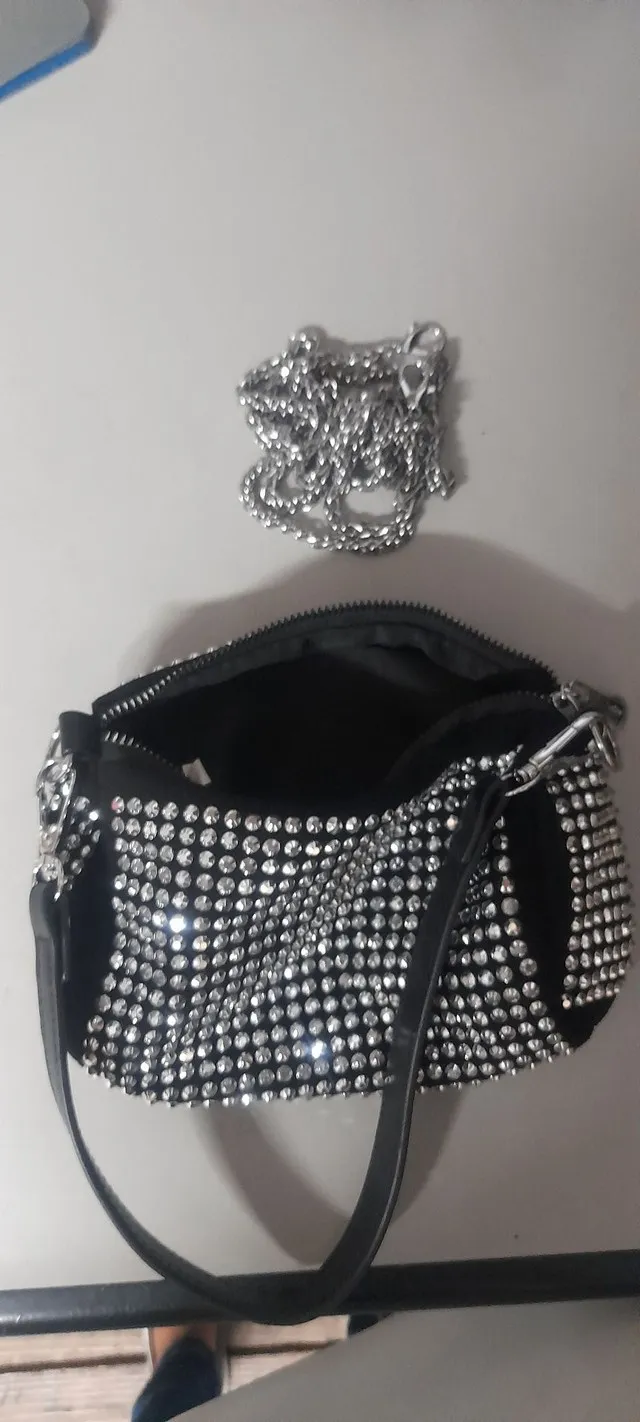 Bolsa festa de mão com alça transversal. Usada em bom estado. Somente venda.