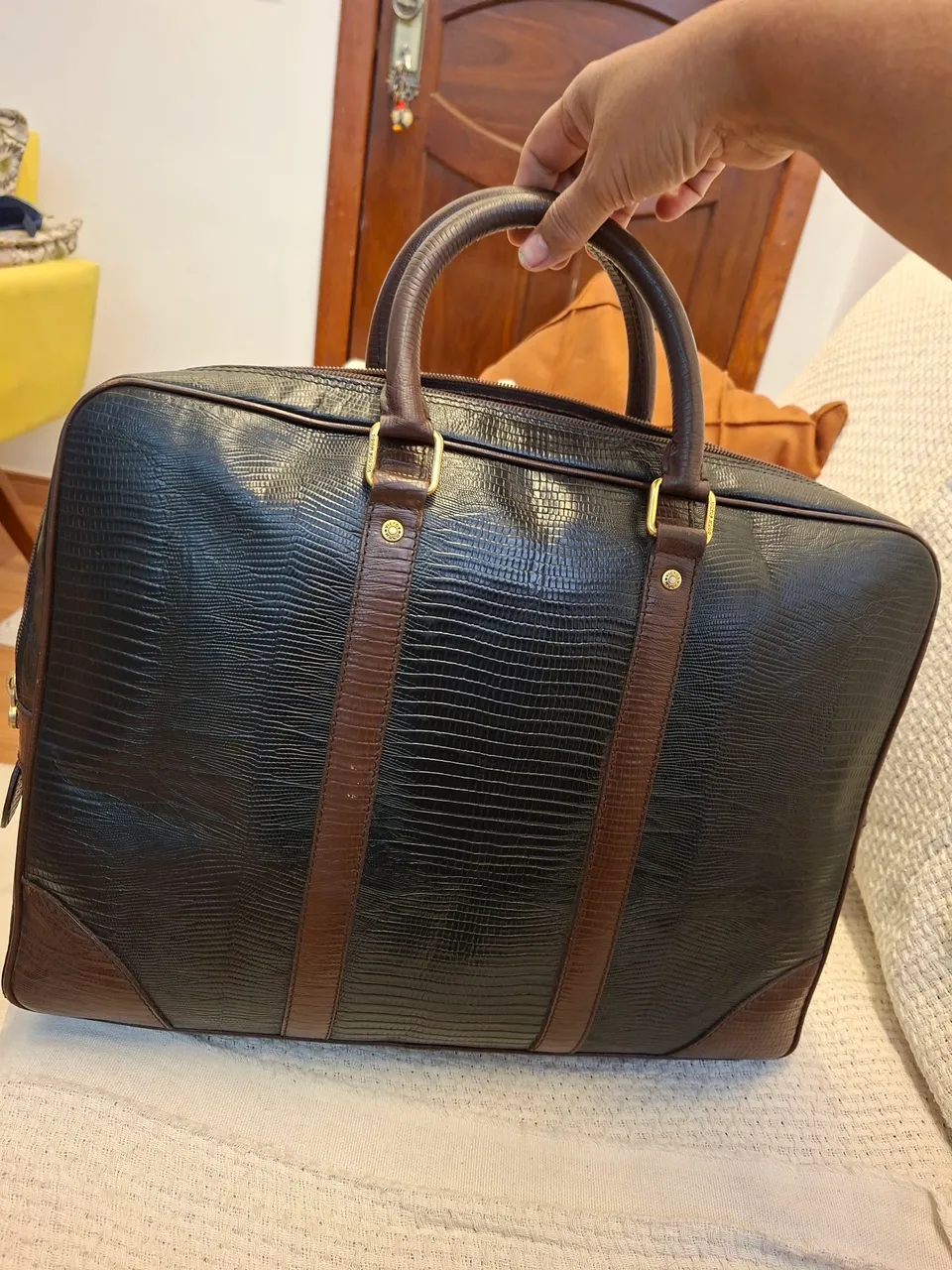 Apresentamos a mala executiva de couro, perfeita para quem busca elegância e praticidade. Design sofisticado e durabilidade para acompanhar você em todas as suas jornadas. Leve seus pertences com estilo e sofisticação!