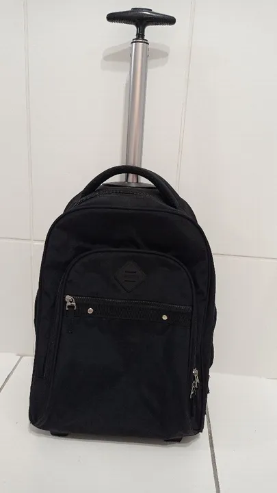 Mochila de Rodinhas Sestini preta com um ano de uso, toda firme em ótimas condições para uso. Muito resistente, a aste puxa até 54 cm o que facilita o uso para adultos também. Medidas da mochila: Altura 45 cm, Largura 32 cm e profundidade 20 cm. Atende muito bem em questão de capacidade.