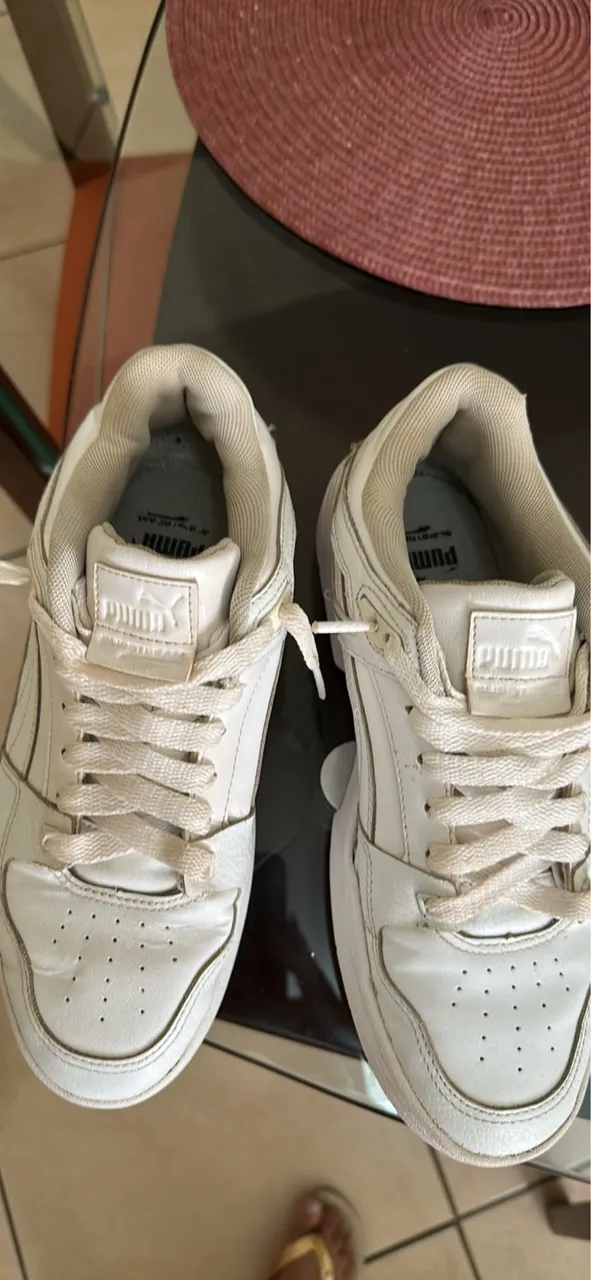 Tênis Puma branco, design clássico e versátil. Perfeito para diversas ocasiões, combinando conforto e estilo.