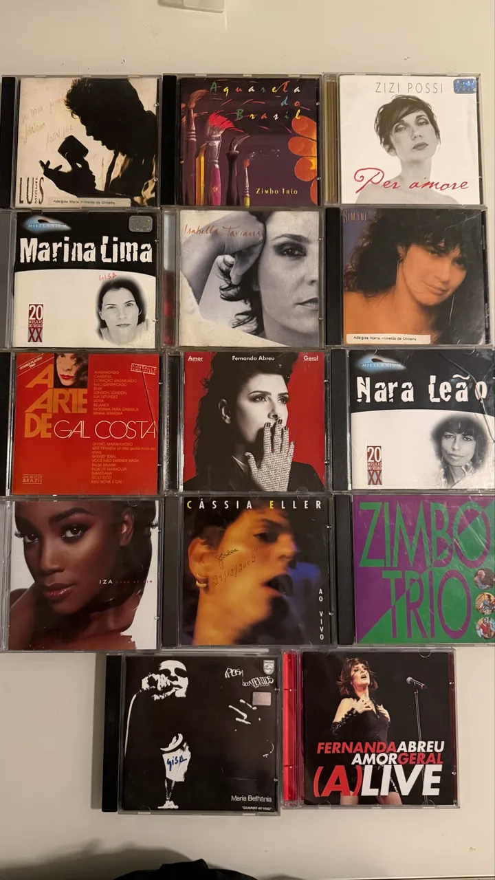 Confira essa coleção de CDs variados, com artistas renomados como Maria Bethânia, Zizi Possi, Cássia Eller, e muito mais. Uma ótima oportunidade para adicionar clássicos da música brasileira à sua coleção!
