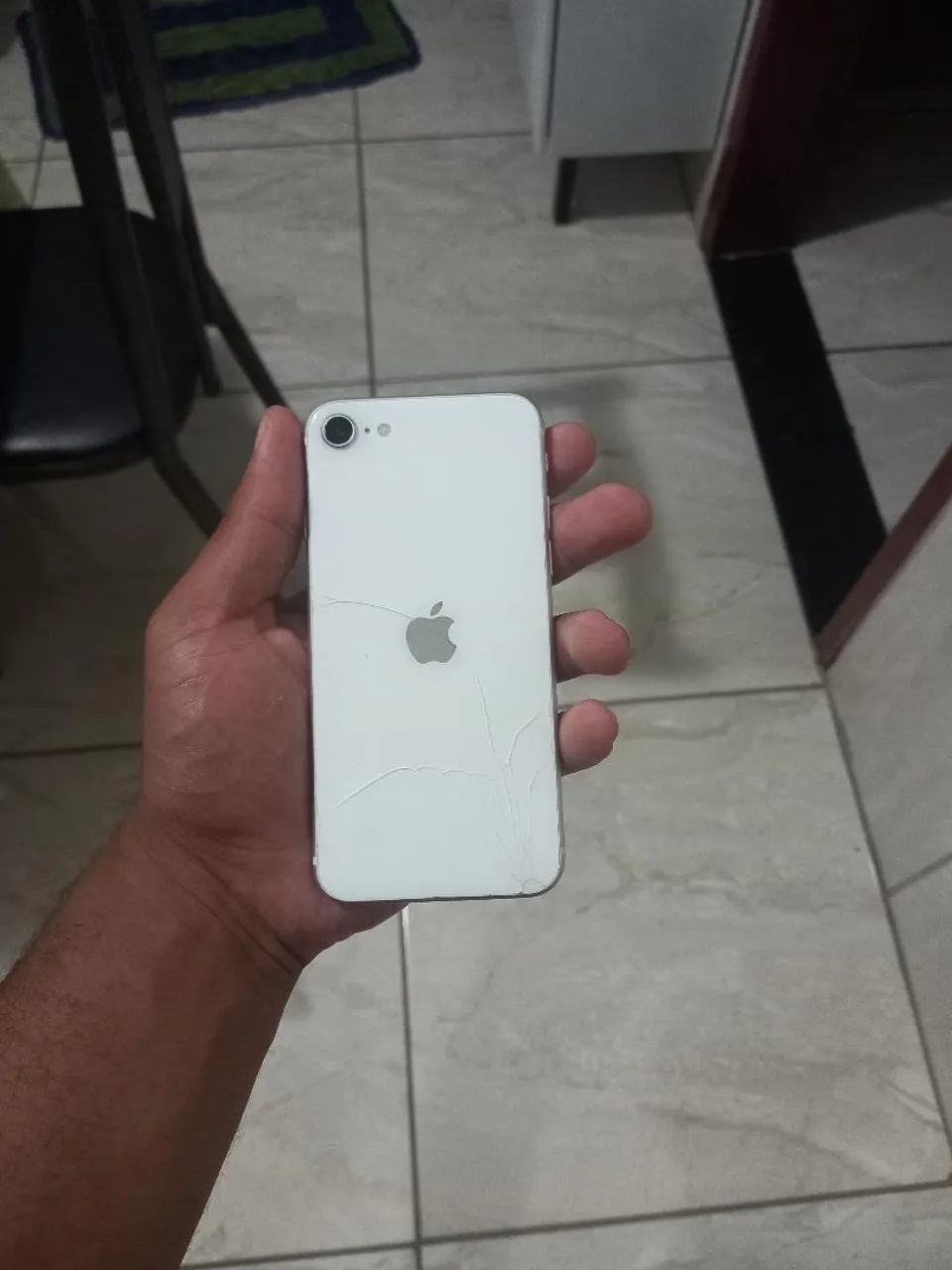 Vendo iPhone SE 2020 128GB em perfeito funcionamento. Aparelho rápido, ideal para uso diário, trabalho e redes sociais. Está com bateria 100% e tudo funcionando normalmente. Possui trincado na parte traseira, apenas estético, não interfere em nada no uso.