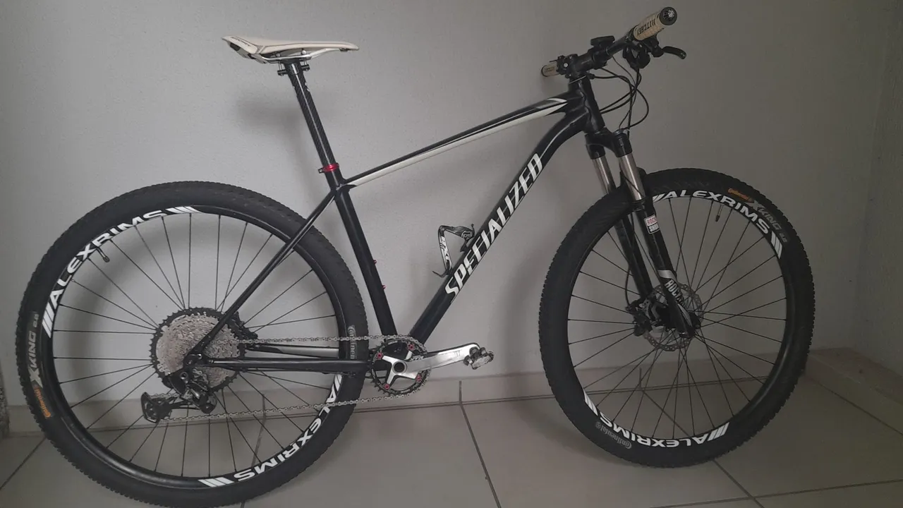 Specialized Rockhopper aro 29 1x12 velocidades quadro tamanho "L".Ela consiste em suspensão Rock Shox Recon ar trava no Guidão revisada a tres meses,guidão e canote de carbono 3T original,manopla em gel original Ritchey,avanco 60mm,tampa de direcao em carbono originsl Vzan,caixa de direcao original Ritchey rolamentadas,freios hidráulicos Shimano SLX M675-B,abacadeira de canote KCNC,selim original Ritchey WCS Vector Wing em gel com estrutura em carbono,câmbio e alavanca Sram NX 1270,cassete Sunrace MZ 800 11x51,pedivela Shimano Deore XTR M970 hallowtech com parafusos KCNC vermelhos para coroa ,corrente KMC,rotores shimano Deore,cubos Shimano Deore XT M785,aros ALEXRIMS,pneus Continental XKing 2.2 em estado de novos,pedal de encaixe Shimano,suporte de garrafa em carbono Bontrager RXL,movimento central hollowtech Shimano Deore XT MT 800 semi novo,raios novos,bike toda revisada com a relação praticamente nova.Zap 31 ... ver número.