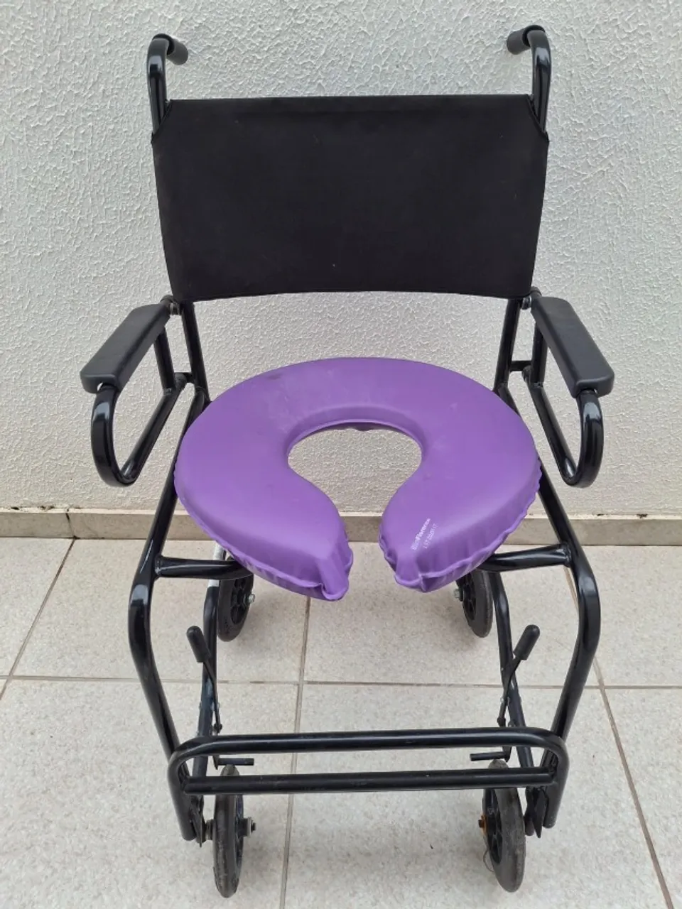 Cadeira de banho móvel para Idoso- MARCA CDS - Almofada no assento e suporte de marreco