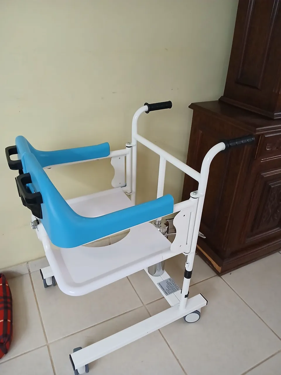 Cadeira de transferência para auxiliar na mobilidade e segurança. Design ergonômico com apoio para braços e assento confortável, ideal para facilitar o dia a dia de quem precisa de suporte.