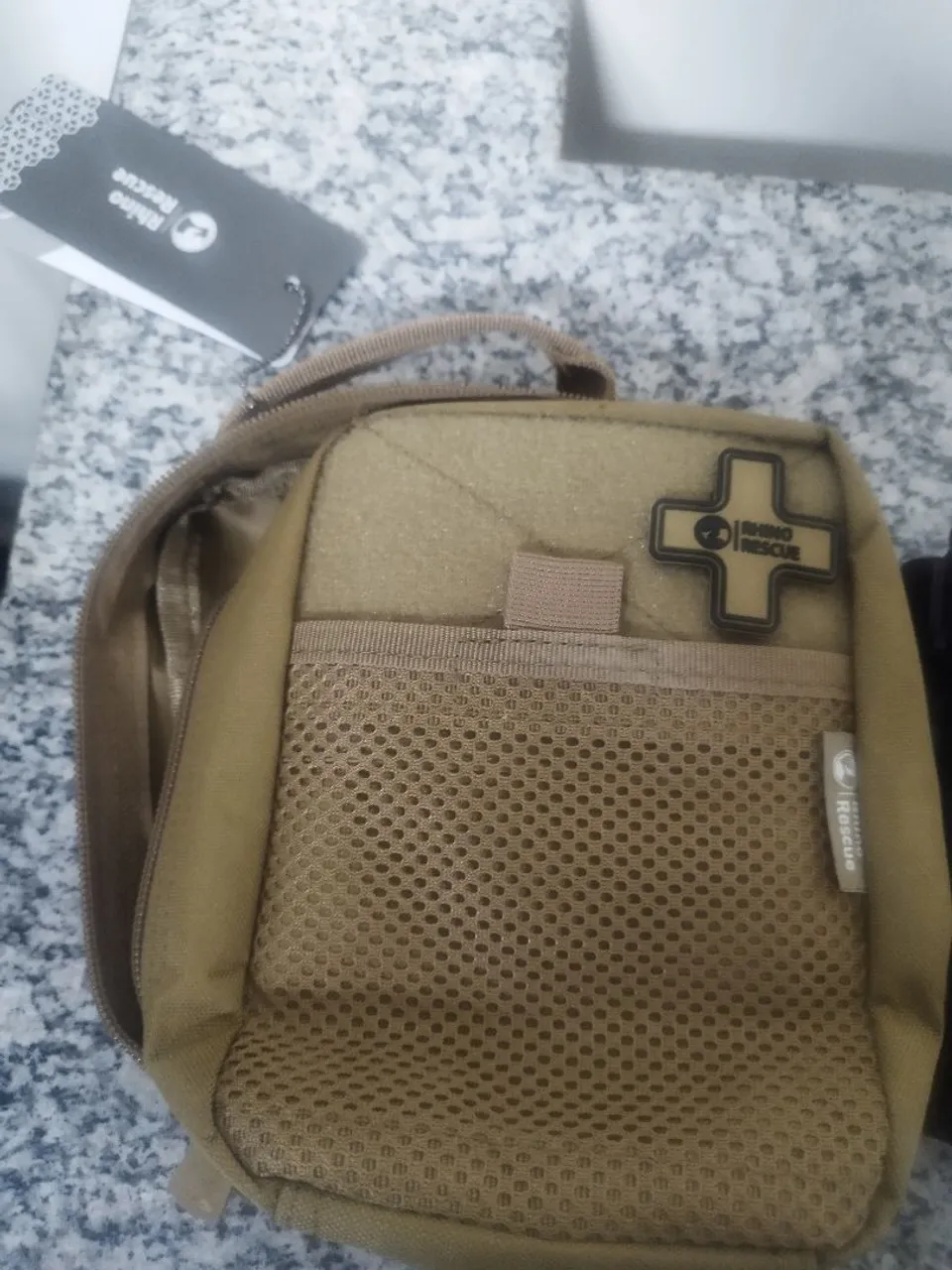 Maleta de primeiros socorros compacta e resistente, ideal para emergências. Possui diversos compartimentos e é perfeita para armazenar itens essenciais. Marca Rhino Rescue.