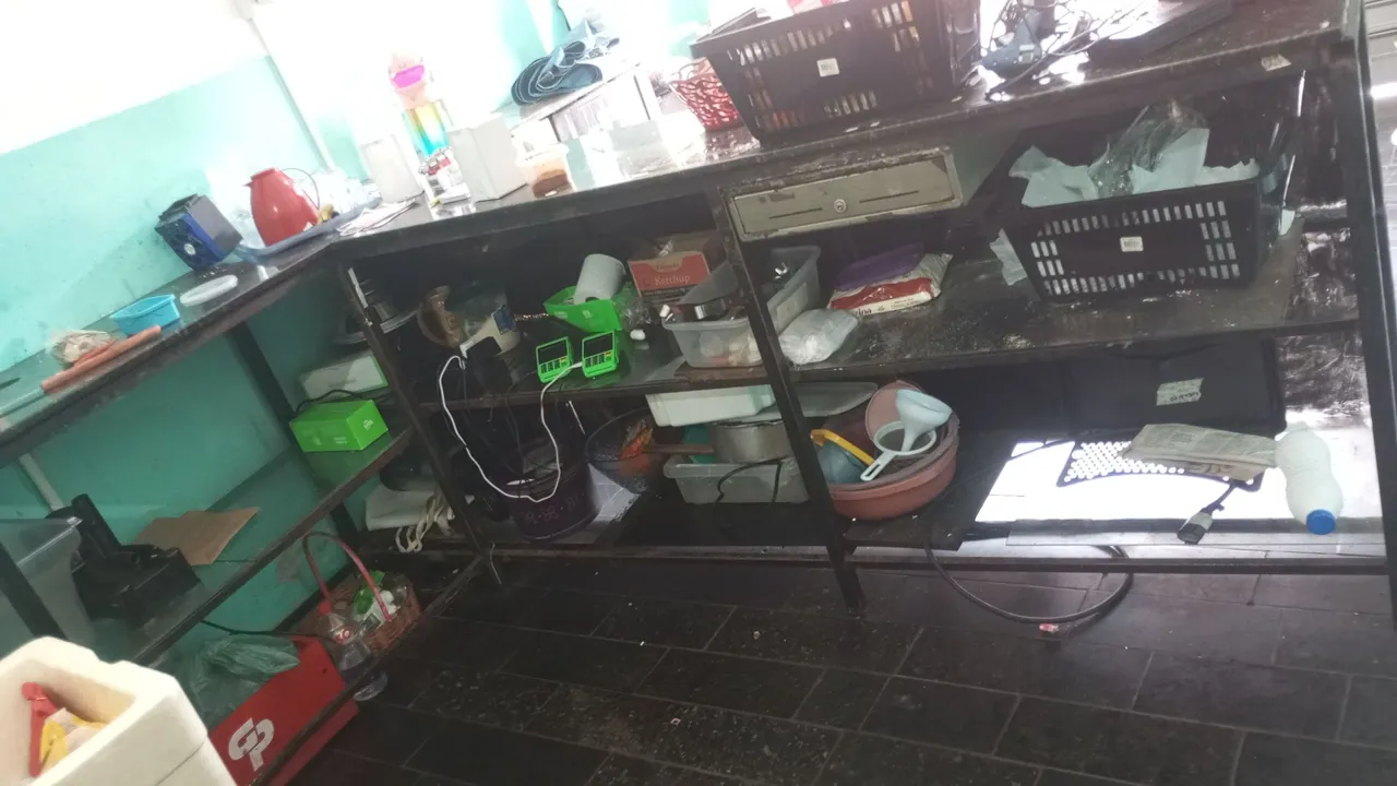 Balcão de mármore resistente e ideal para o seu comércio. Design moderno e funcional, perfeito para expor seus produtos com elegância e otimizar o espaço do seu negócio fechado de vidro escuro já com o caixa encaixado.