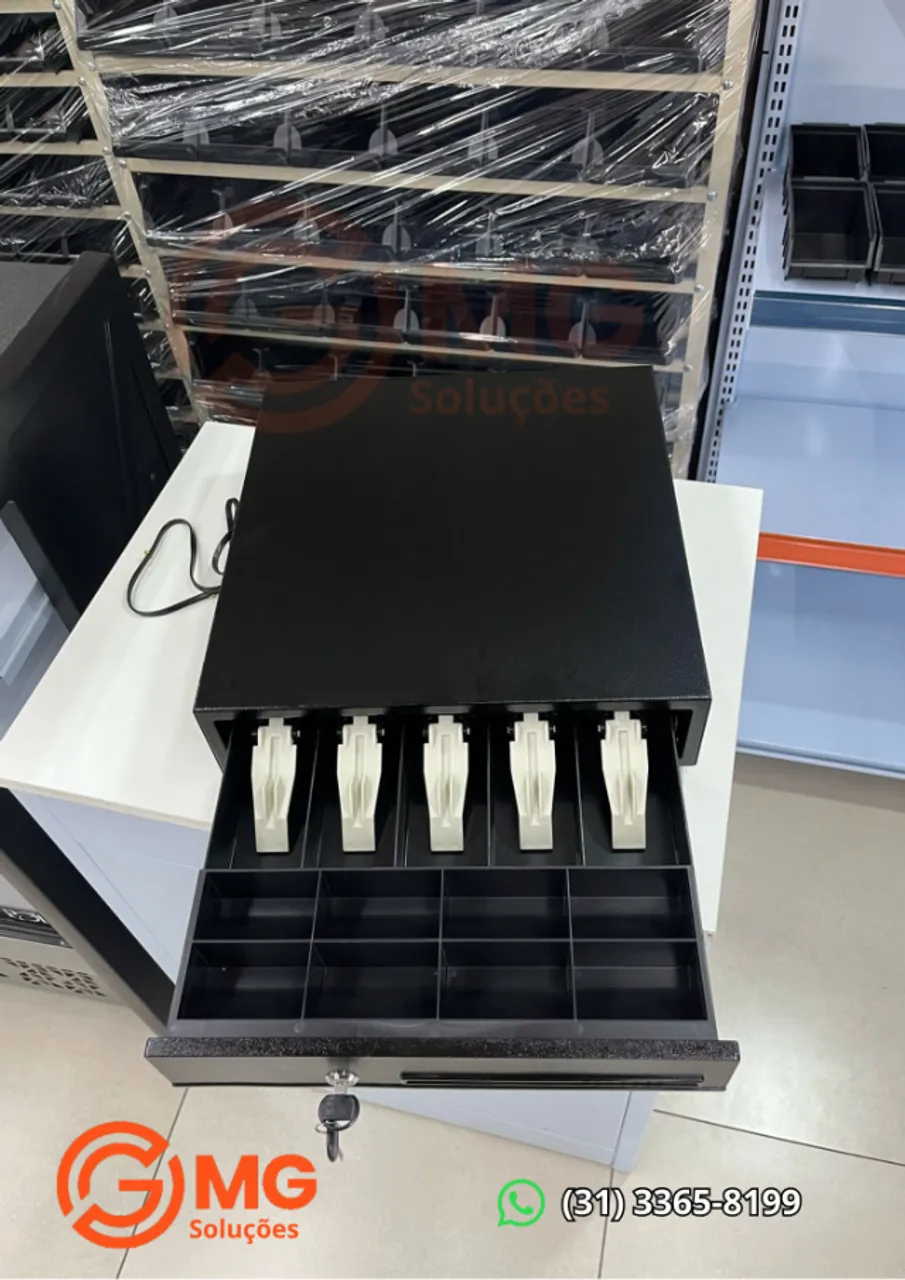 A gaveta caixa de dinheiro traz praticidade e segurança para o dia a dia do seu comércio, garantindo organização no recebimento e agilidade no atendimento ao cliente.