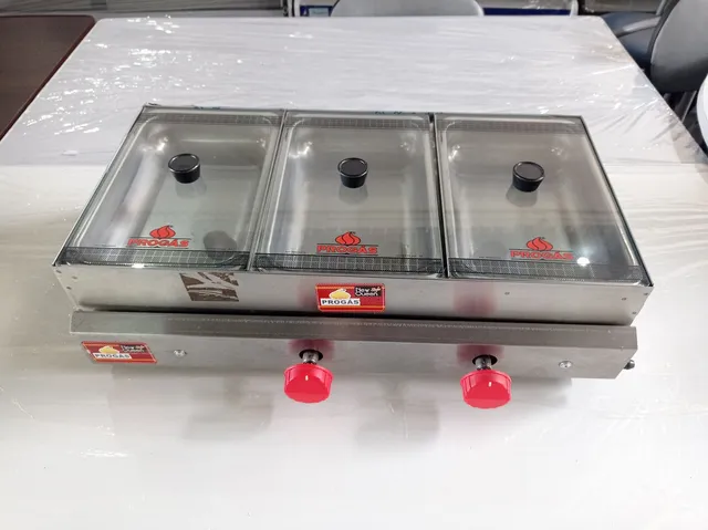 Ideal para uso comercial, em lanchonetes, trailers, buffet, restaurantes e cozinhas em geral. Com tampa de vidro com visor, o equipamento de baixa pressão possui cubas de inox para 1,75 litros cada.