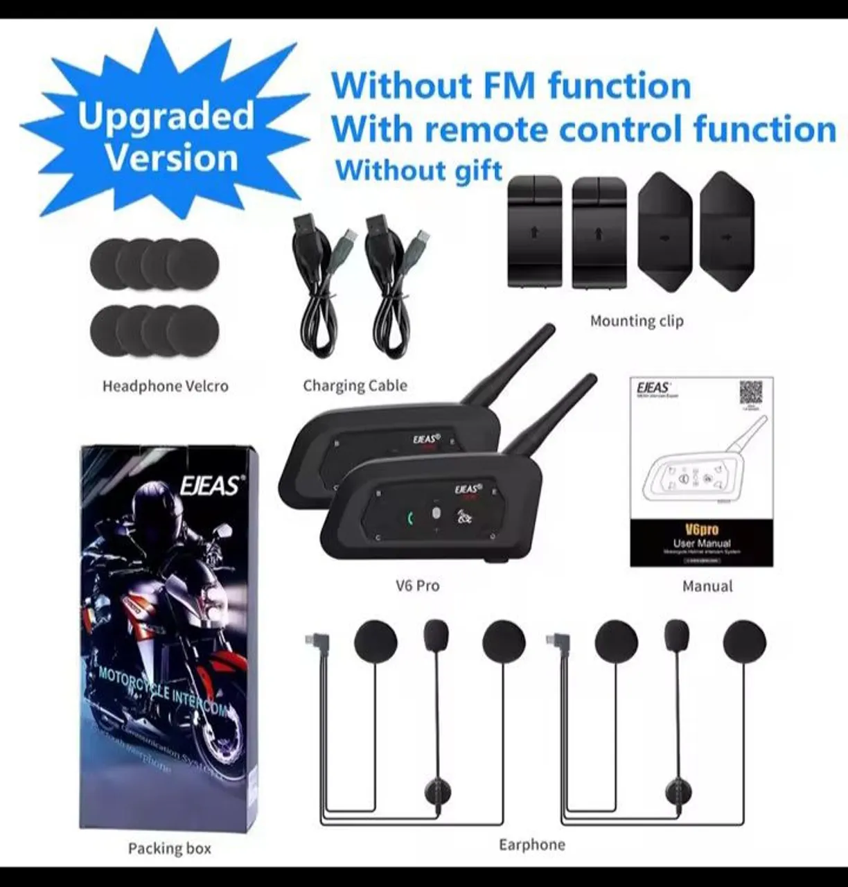 Comunicação perfeita para motociclistas! O intercomunicador EJEAS V6 Pro oferece áudio nítido e conexão estável. Ideal para comunicação entre piloto e garupa ou para comunicação com outros motociclistas. Sem função FM, mas com controle remoto.