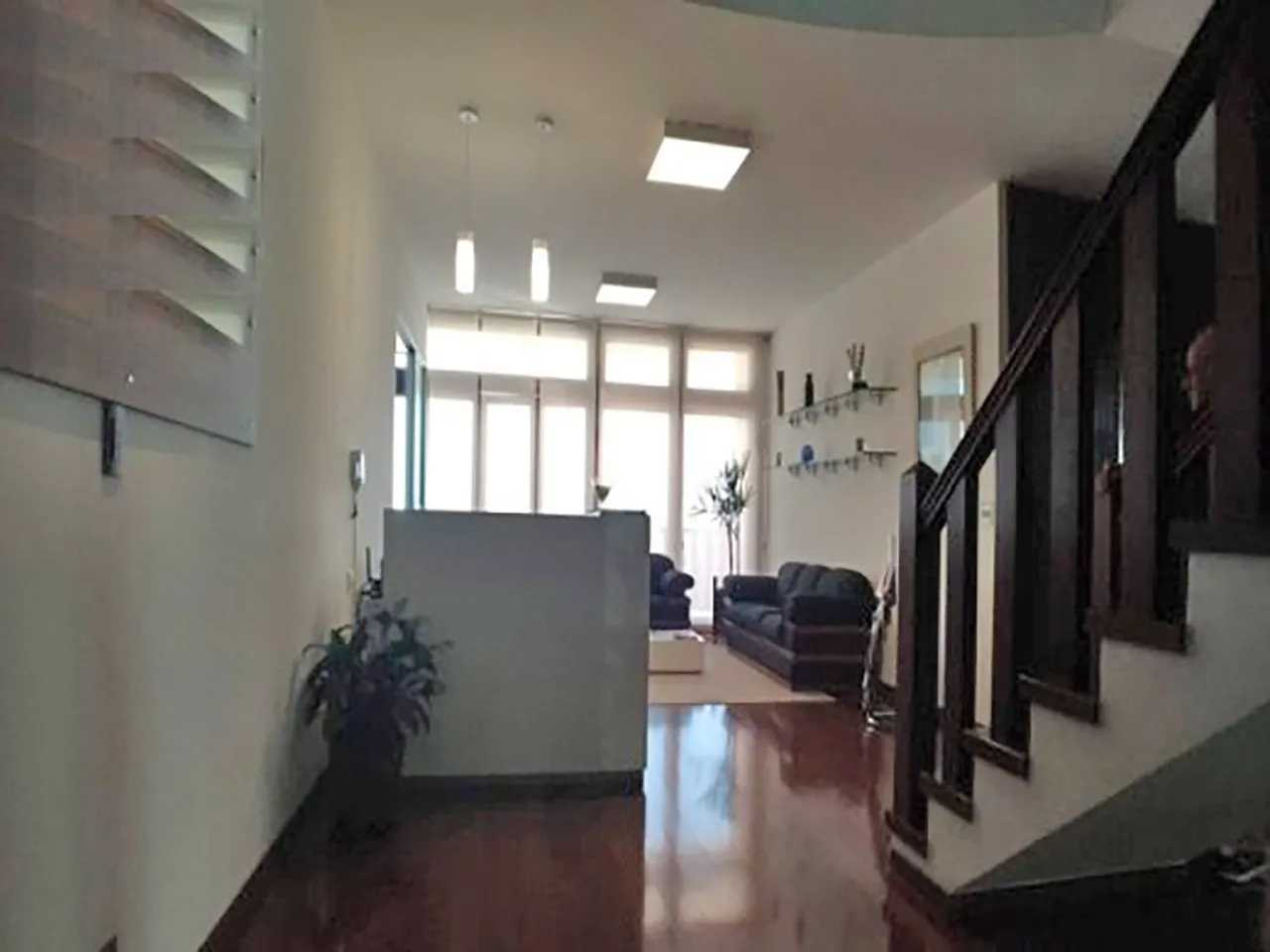 . 1° Pav. Superior: 4 quartos, sendo 1 suíte máster com armários, varanda, banheiro com hidromassagem, box blindex, espelho de cristal belga de 8mm, armários, piso em cerâmica e bancada em granito; 1 suíte, com armários, varanda, banheiro com box blindex, piso em cerâmica, bancada em granitos e armários; 2 quartos com armários, varanda; banheiro social, com banheira e bancada em granito, piso em cerâmica; no corredor tem armário e dispenser para roupas sujas; ampla sala. Pisos em tabua corrida, janelas em madeira maciça. Pe direito 3m.