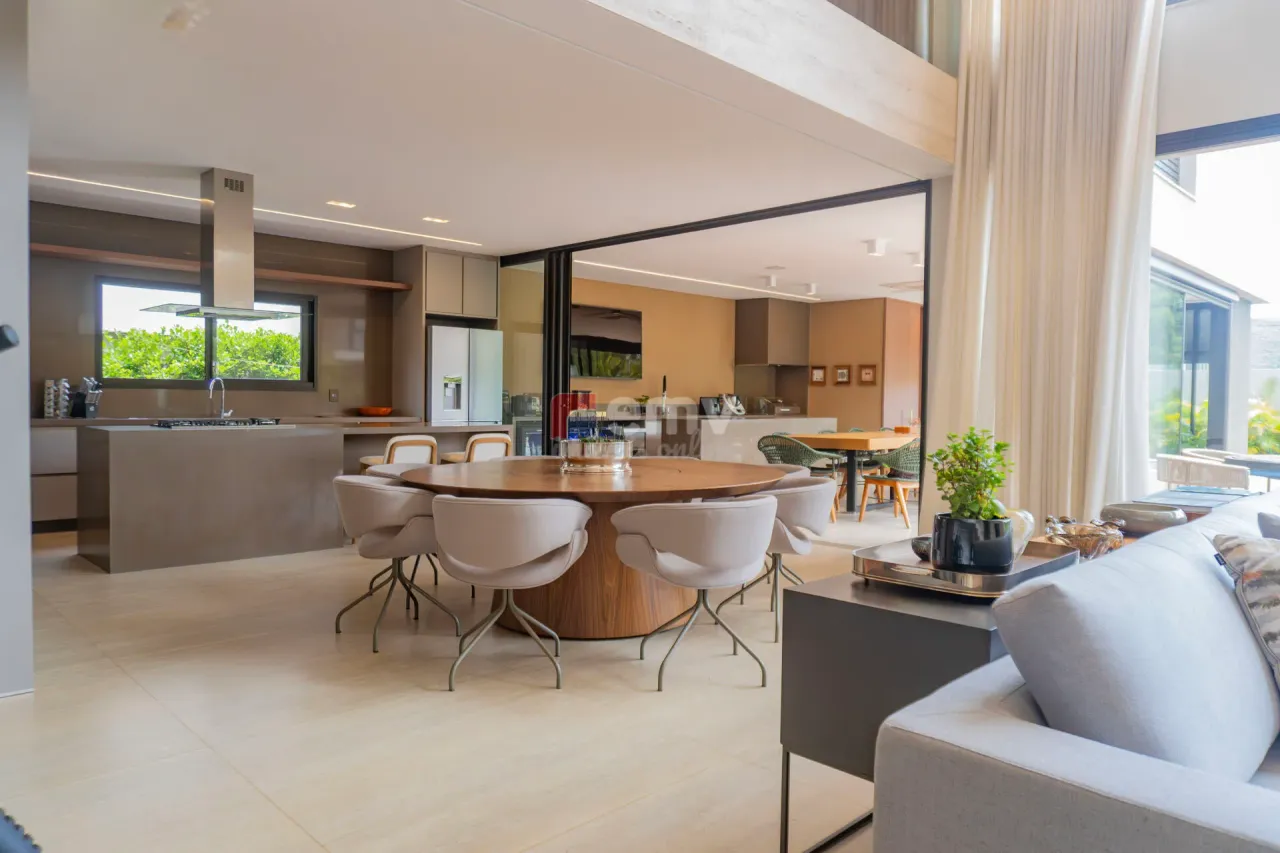 · Elegante Sala com Pé-Direito Duplo Integrada à Cozinha, Espaço Gourmet e Piscina