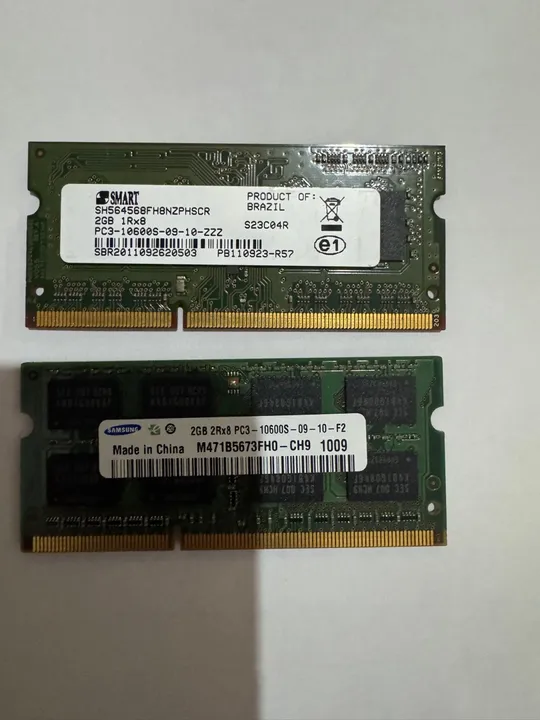 Memória notebook 2x2gb DDR3 1333Mhz Pode testar na hora Valor das duas Cada por 30,00