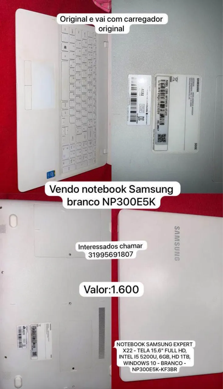Notebook Samsung Expert X22 com tela Full HD de 15.6 polegadas, processador Intel i5, 6GB de RAM e HD de 1TB. Perfeito para suas tarefas diárias! Vai com carregador original Nunca foi trocado peças continua com as originais Está em perfeito estado