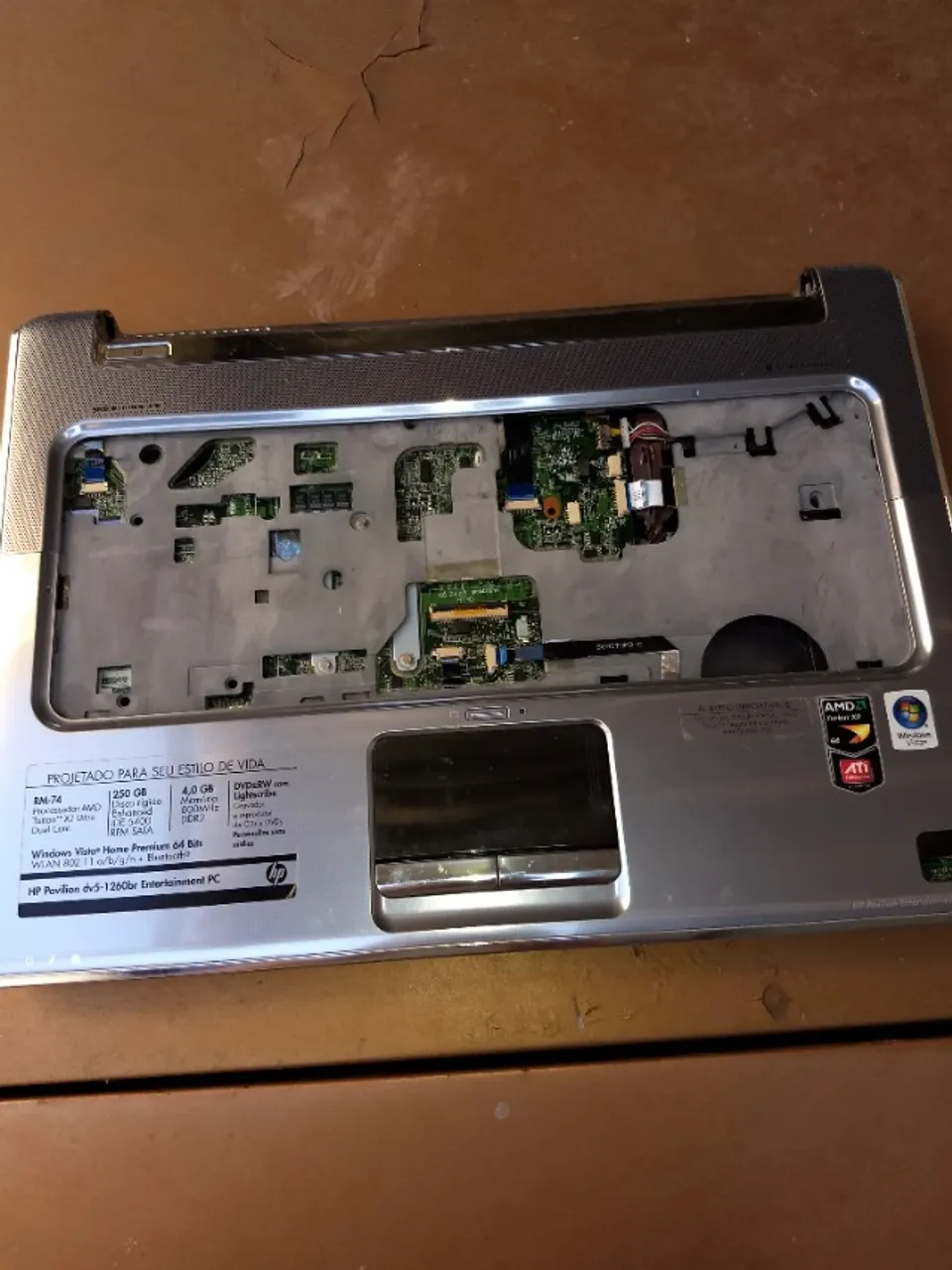 Peças de notebook HP Pavilion dv5-1260be para reposição. Diversos componentes disponíveis, incluindo placa mãe,carcaça e controle remoto
