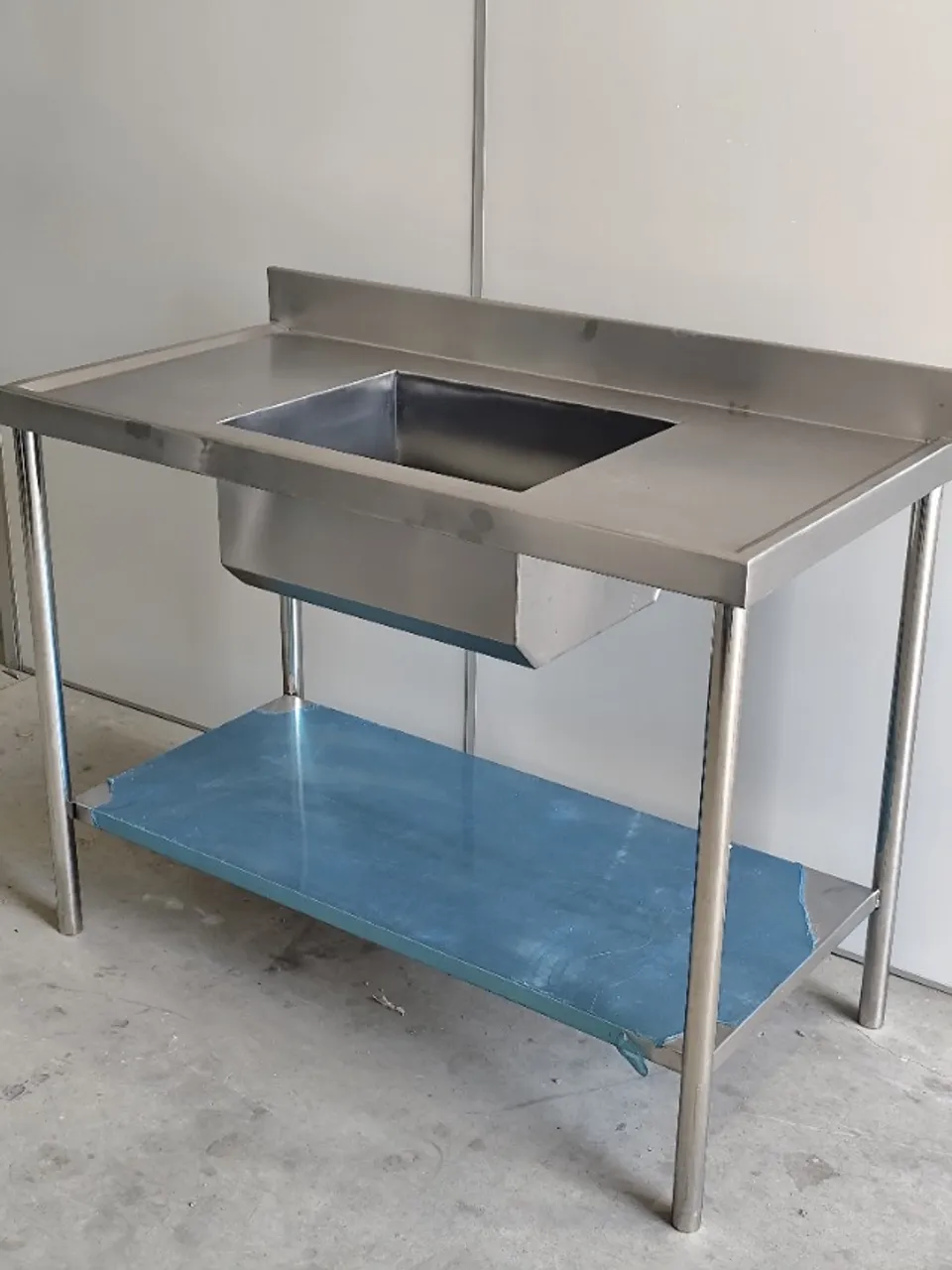 Pias, tanques, armários, prateleiras, mesas, bancadas, coifas, dutos e outros equipamentos projetados em aço inox de alta qualidade.
