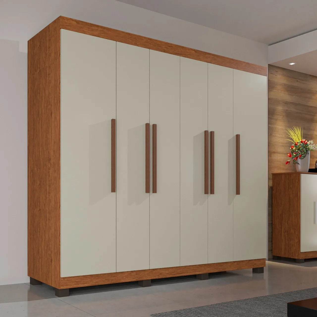Guarda-Roupas de Casal 6 Portas com design moderno e funcional para organizar suas roupas e objetos. Possui amplo espaço interno com gavetas, prateleiras e cabideiros. Perfeito para quem busca praticidade e elegância. Fale cmg 319... ver número Dira lemos