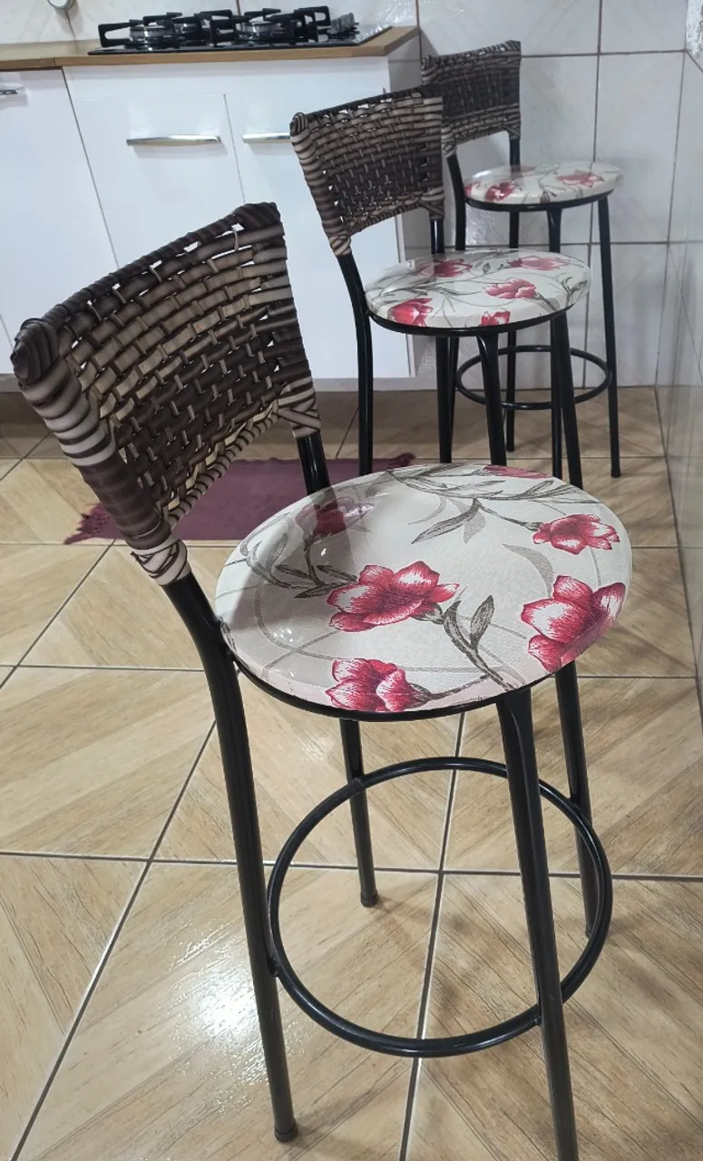 Vendo 3 bancos para bancada eles tem 72 cm de altura, semi novos.