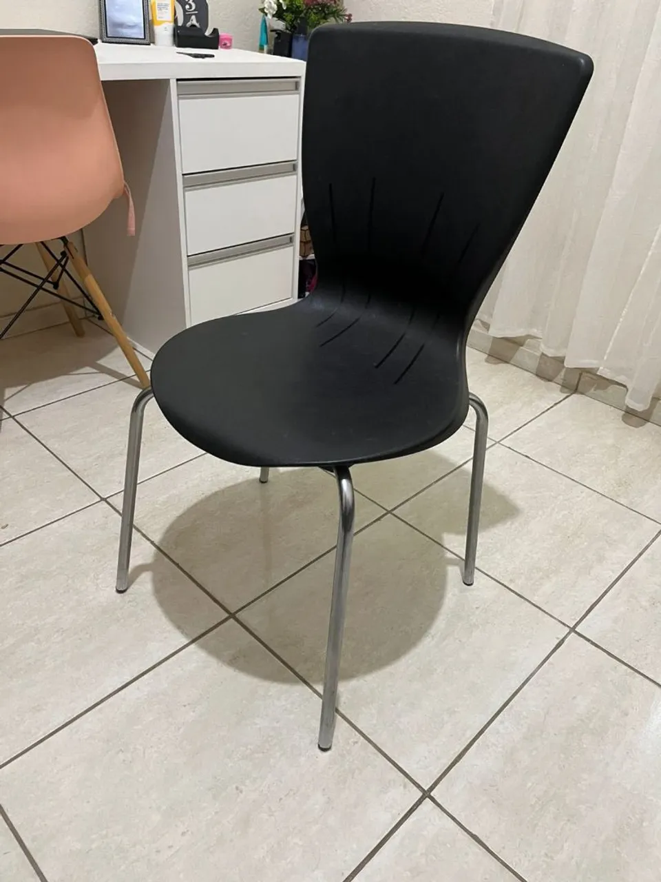 Cadeira preta em polipropileno com base aço carbono prata Conjunto de 4 cadeiras iguais, usadas, ótimo estado de conservação