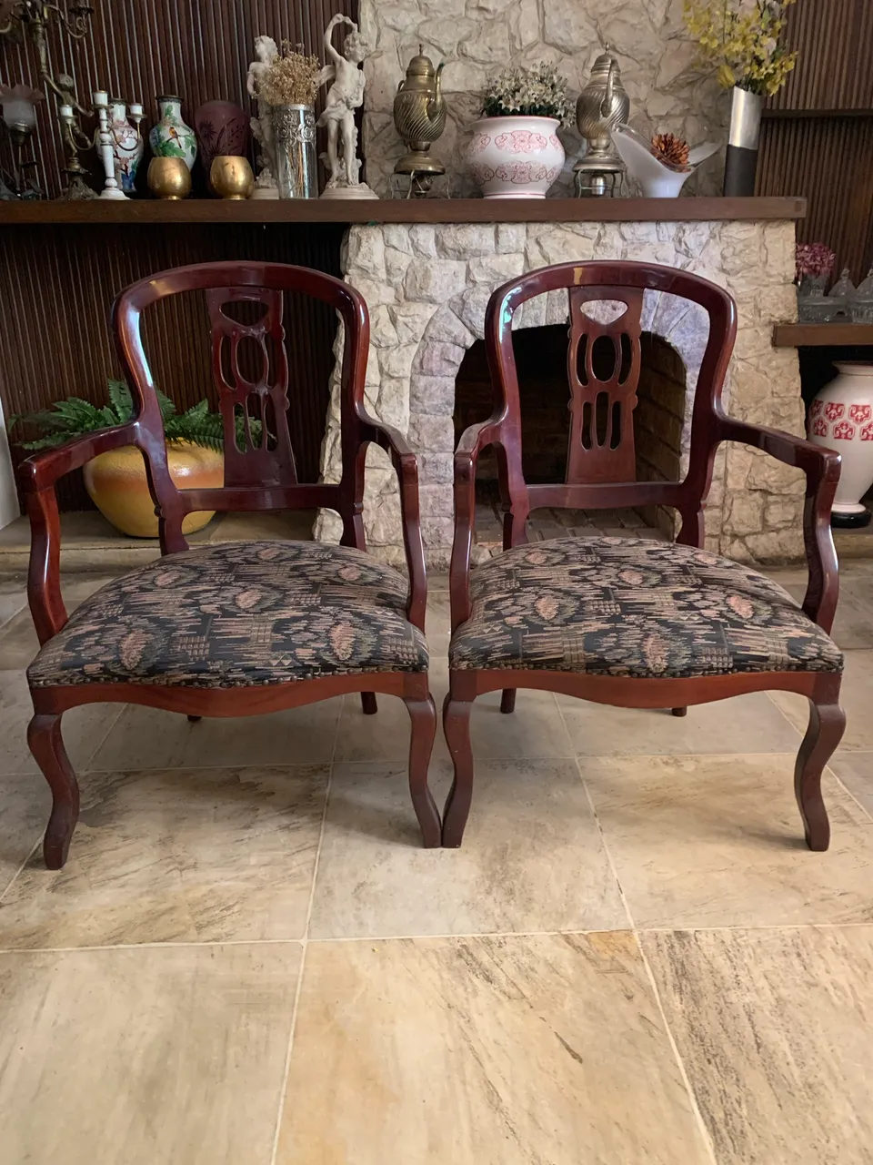 Jogo de cadeiras de madeira com assento estofado em tecido 60 cm de largura,50 cm de comprimento,90 cm de altura