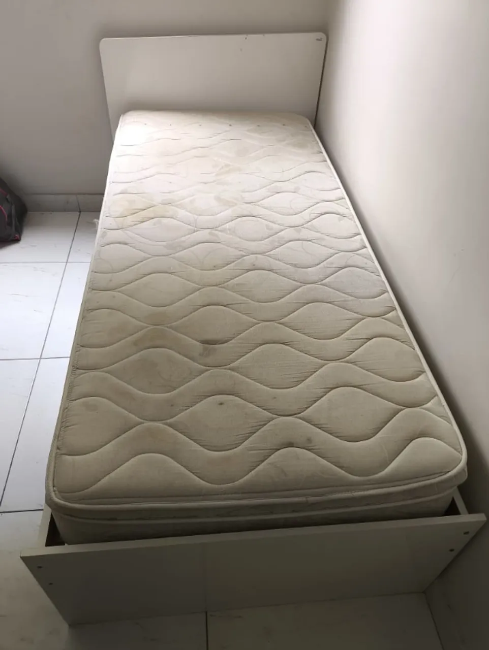 Cama de solteiro com colchão, ideal para quem busca conforto e praticidade.