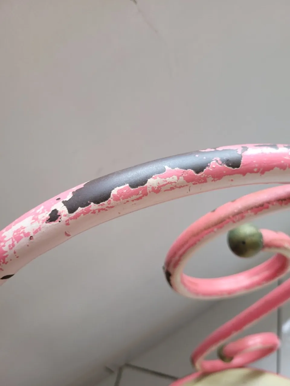 Conj' penteadeira vintage+cabideiro de chão,de ferro,o conjunto possui mais de 40 anos,com tempo de pedra e espelho ambos originais,os itens precisa de reforma, cadeira precisa,de solda em alguns pontos,trocar o estofado,e tbm requer uma pintura nova,os itens de colecionador,está com uns pintura artesanal,porém mantém a pintura original por baixo,! Mais informações, chamar no chat!