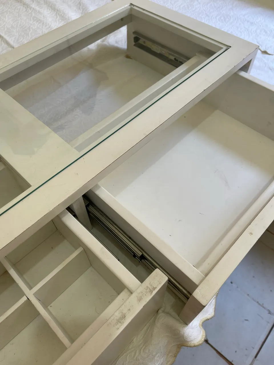 Penteadeira suspensa feita sob medida, possui algumas marcas de uso mais nada que o anormal, possui corrediças no que facilita nas aberturas das gavetas, possui vidro na parte do tampão. Estou vendendo pois já possuo uma, *valor 350,00 aceito cartão com taxa da maquininha*
