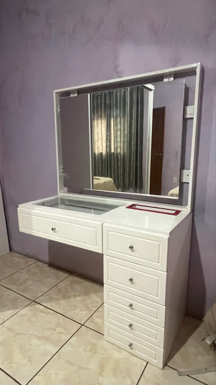 Linda penteadeira com design moderno e funcional, perfeita para organizar seus cosméticos e itens de beleza. Ideal para quem busca praticidade e elegância no dia a dia.