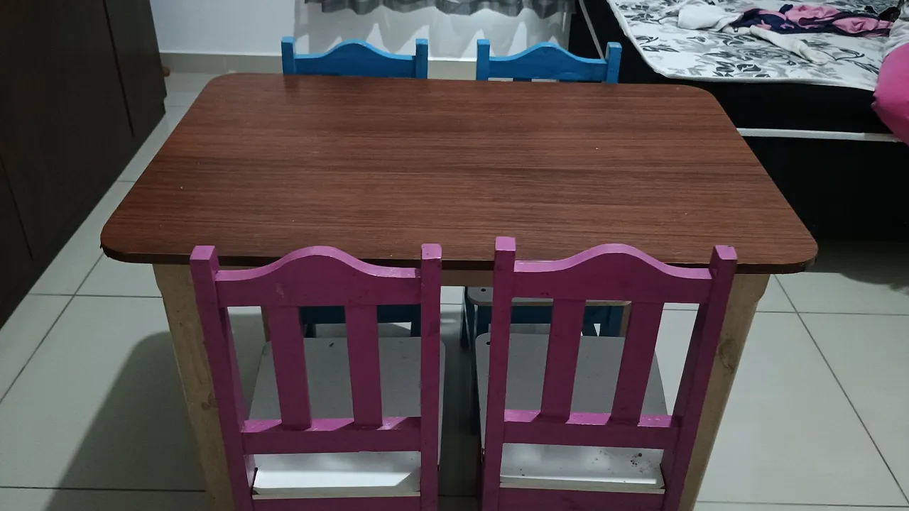 Conjunto de mesa e cadeiras perfeito para o quarto das crianças! Cores vibrantes e design divertido para deixar o ambiente mais alegre.