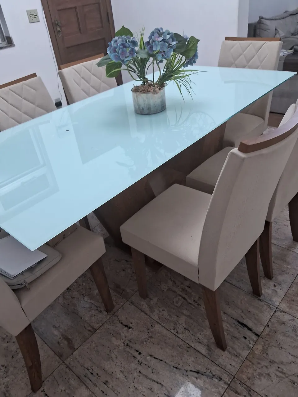 Transforme sua sala de jantar com este elegante jogo de copa! Mesa com design moderno e com 6 cadeiras, perfeita para reunir a família e amigos. Detalhes em madeira e tampo de vidro que agregam sofisticação ao ambiente.