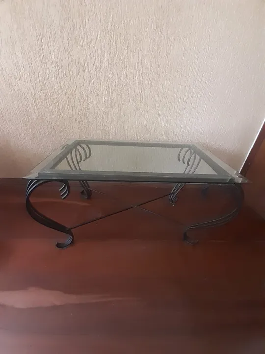 Mesa de centro em vidro temperado e ferro, com design elegante e moderno. Perfeita para complementar a decoração da sua sala de estar.