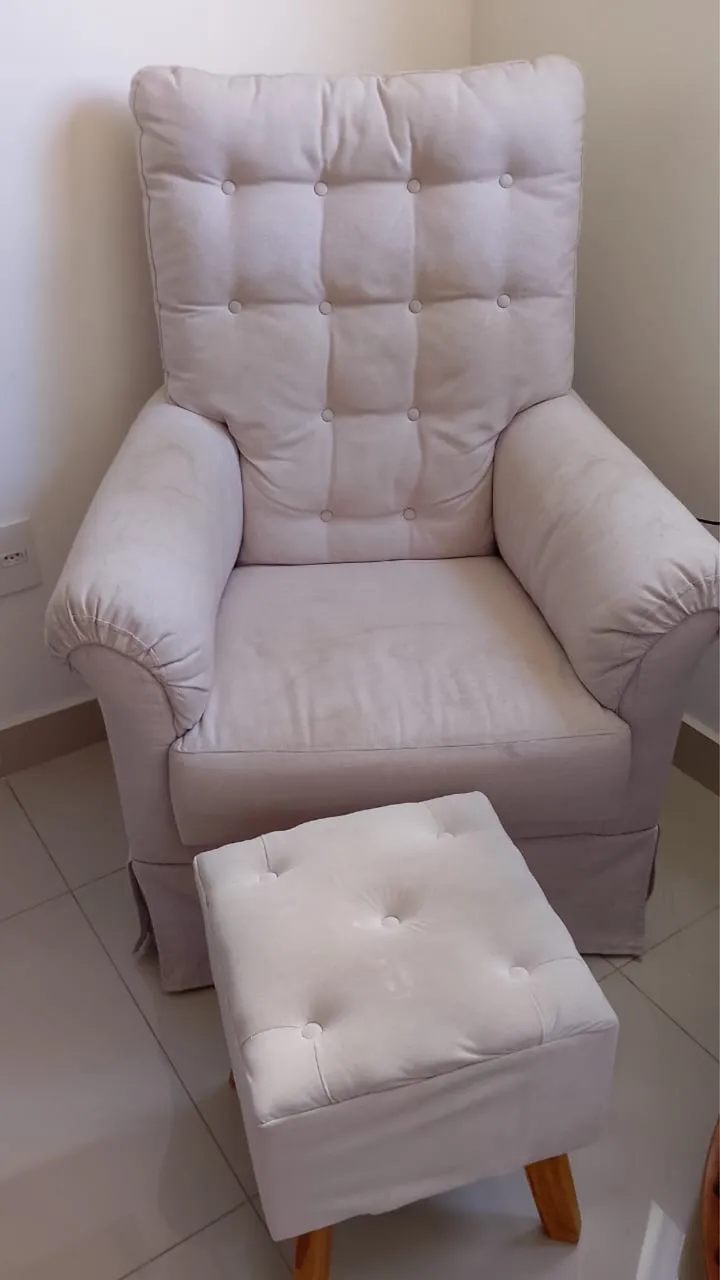 Aconchego e conforto para você e seu bebê! Linda poltrona de balanço para amamentação. Super confortável! Te abraça! Cor: off white, tecido: linho. Acompanha puff para apoiar os pés. Usada em perfeito estado!