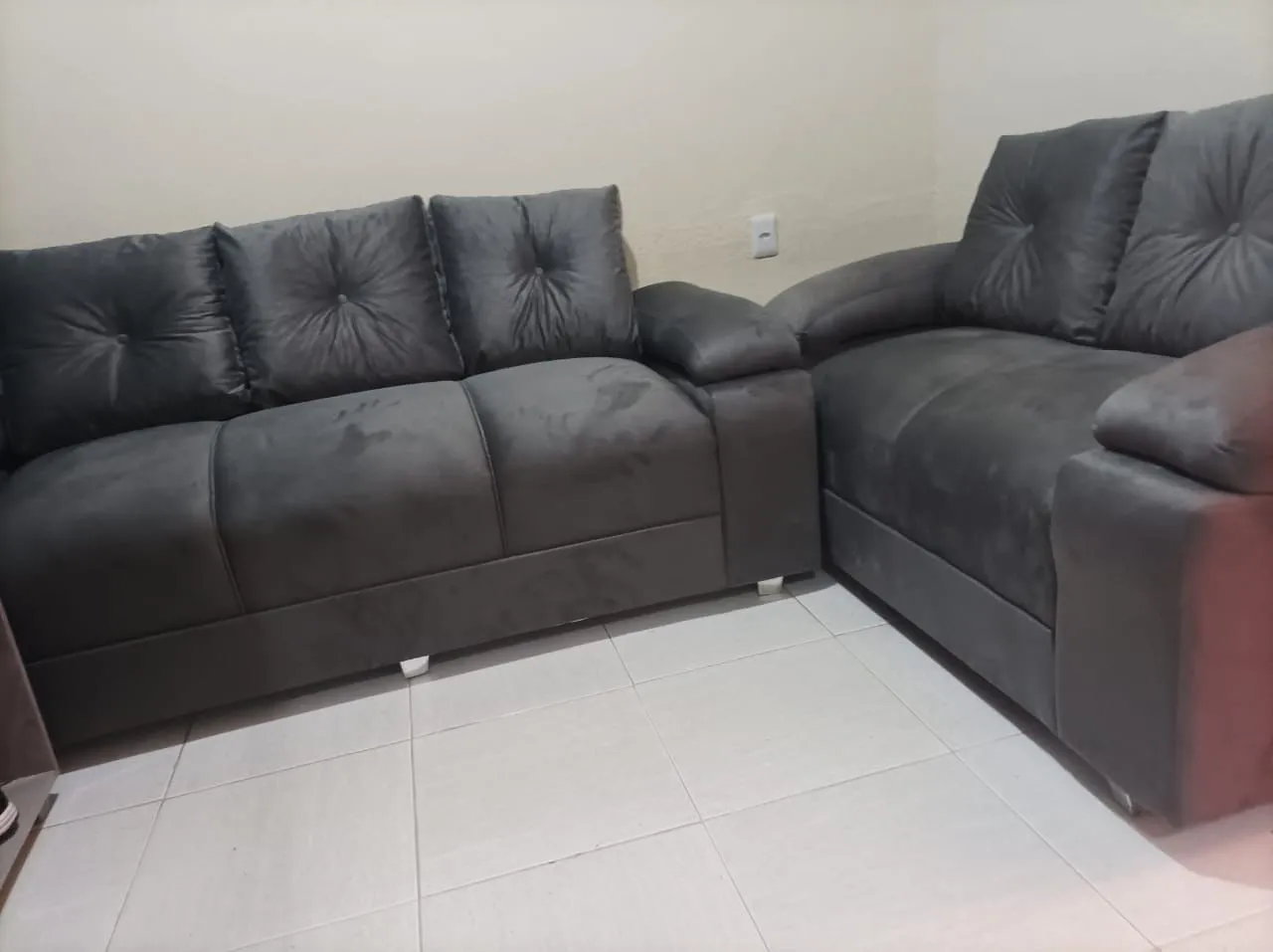 Conjunto de sofás em suede cinza, composto por um sofá de 2 e 3 lugares e um sofá de canto. Perfeito para salas amplas e confortáveis. Design moderno e Entregamos em toda a BH e região encomenda através do whatsapp (31)... ver número