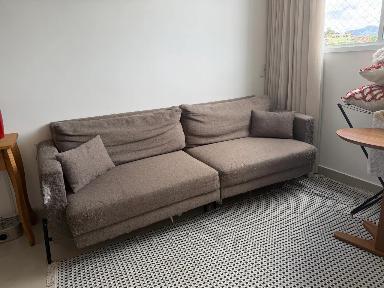 Fora isso, o sofá é bem confortável e a estrutura está boa. Não é retrátil, mas uma pessoa dorme tranquilamente.
